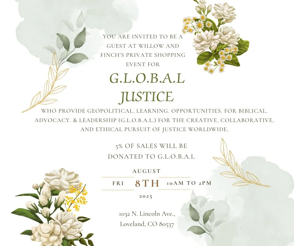 G.L.O.B.A.L. Justice will be sharing MOBL GLBL MRKT gifts + justice with the community at Loveland’s Juneteenth Freedom Day Celebration this Saturday at the Foote Lagoon in Downtown Loveland. Come out and celebrate together and support artisans and vulnerable communities from across Africa.