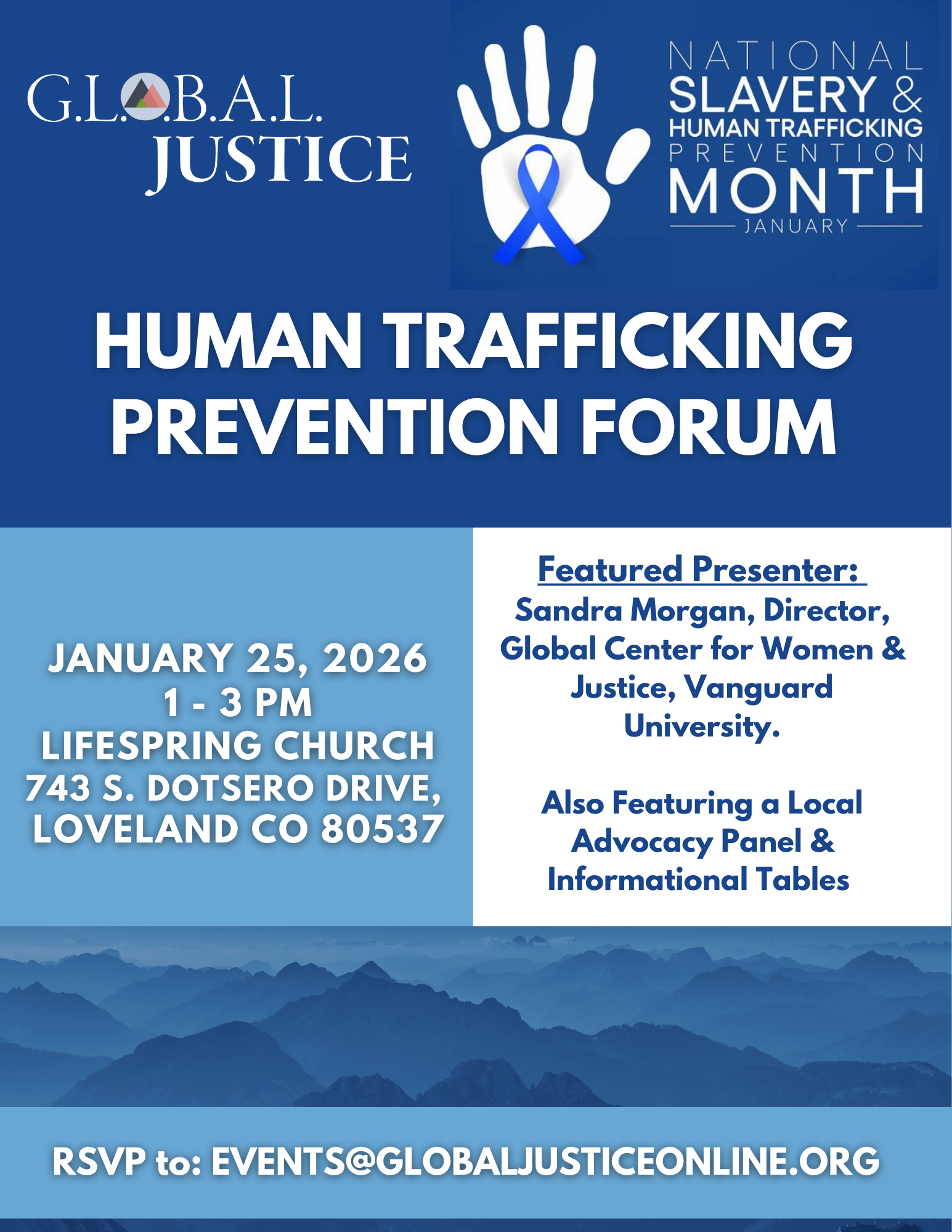 Human Trafficking Prevention Forum Sunday, January 25, 2026 1:00 PM 3:00 PM 13:00 15:00 Google Calendar ICS